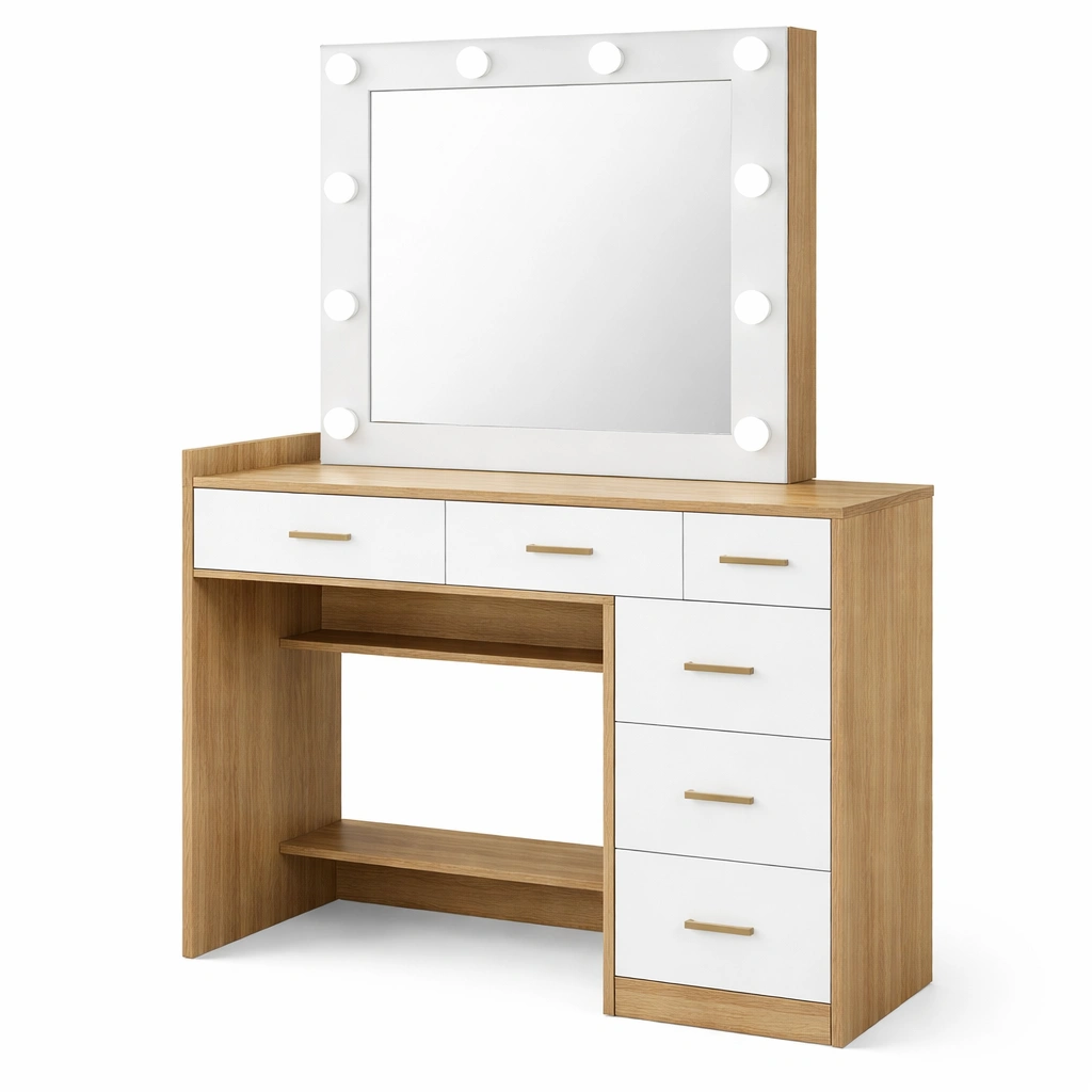 Tocador de madera con espejo y luces LED