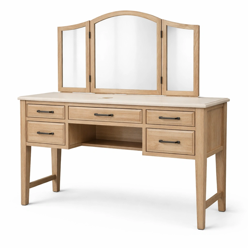 Tocador de madera con espejos triples