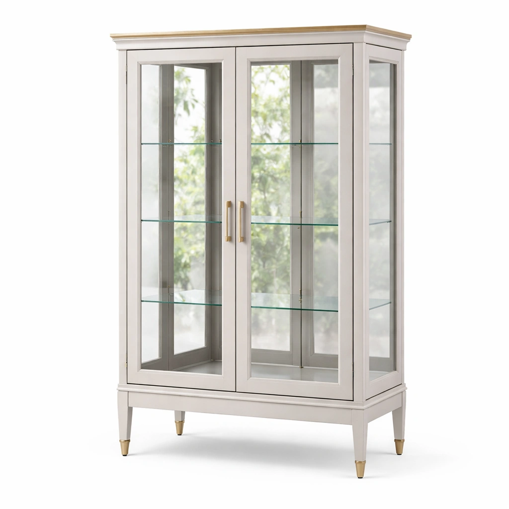 Vitrina de madera blanco con vidrio templado