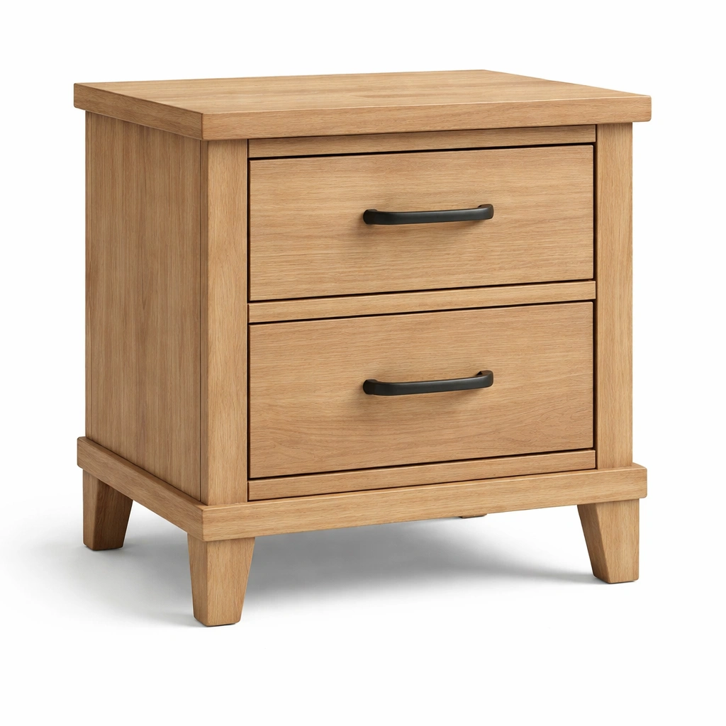 Mesita de noche de madera chapada en roble con 2 cajones
