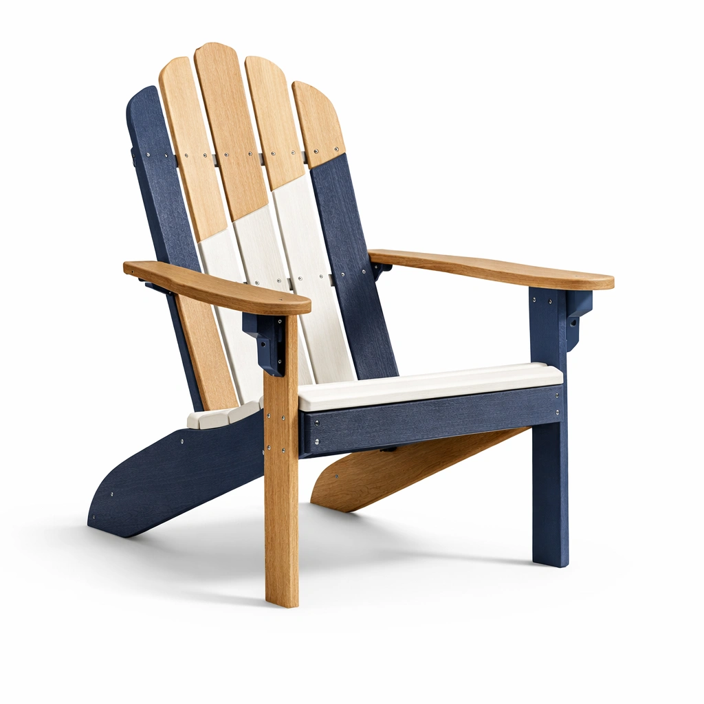 Silla Adirondack de madera compuesta azul blanco y roble